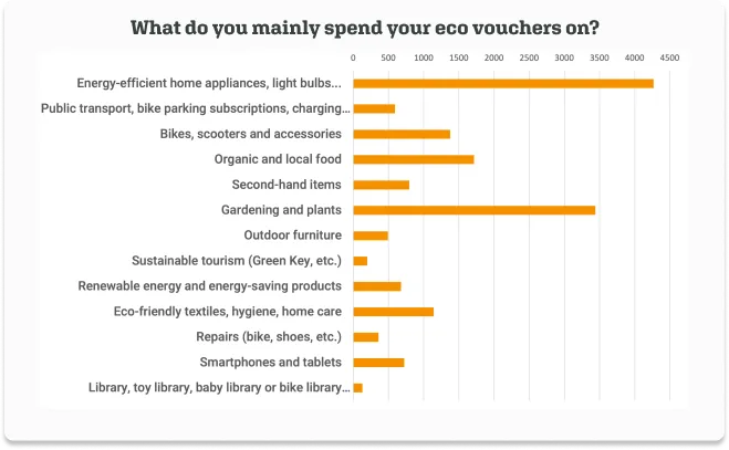 Another rapidly growing use: everything related to cycling. Eco vouchers are massively used to invest in a (electric) bike, cover repair costs, or purchase accessories.