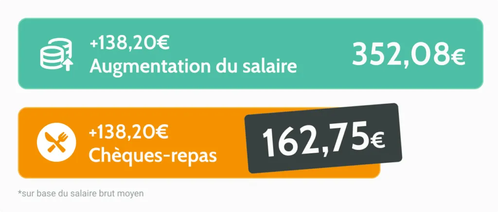 **👉 **Une augmentation de salaire coûte donc plus du double d’un système de chèques-repas pour un résultat net identique.