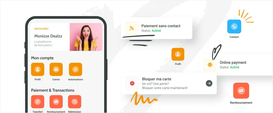 Carte perdue ou volée ? En un clic, bloquez votre carte via la page d’accueil ou le Hub. Ajoutez une raison, vérifiez ou modifiez votre adresse de livraison et consultez le statut de votre carte. Modifiez facilement vos données personnelles et récupérez votre nom d’utilisateur si vous l’avez oublié.